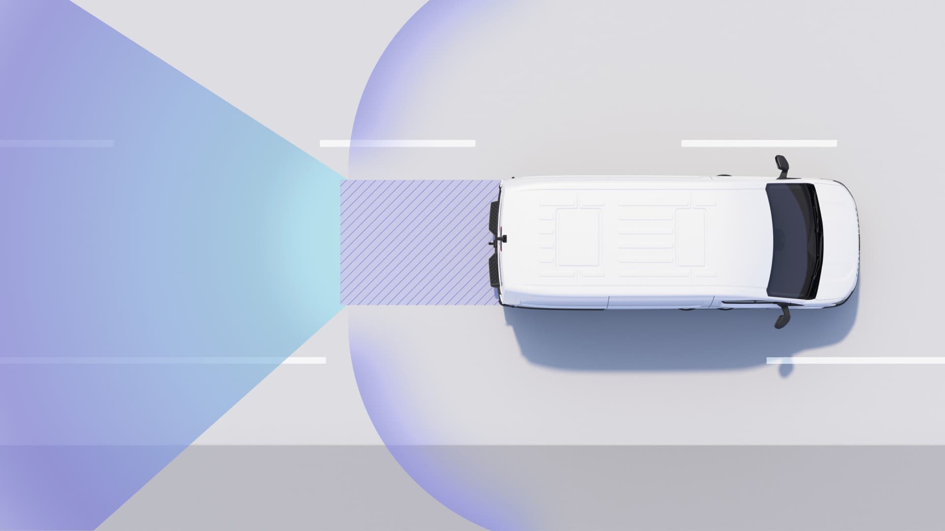 Om fører har en syklist i blindsonen vil et lyssignal i sidespeilet varsle føreren. Om varebilen oppdager en syklist på passasjersiden, vil en sensor aktivere lyd- og lyssignal.