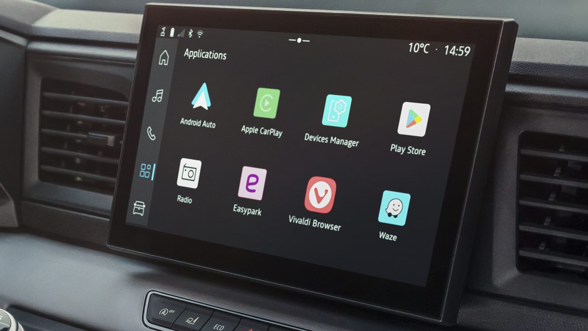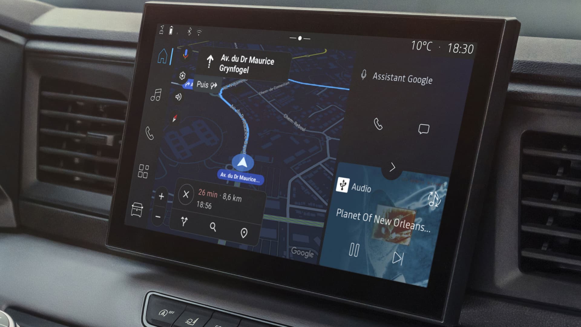 Master E-Tech electric har en av de største skjermene på markedet. Den har det intelligente openR link-multimediesystemet med innebygd Google. Skjermen har et strømlinjeformet og brukervennlig grensesnitt, samt smarttelefonspeiling for å enkelt koble deg opp.